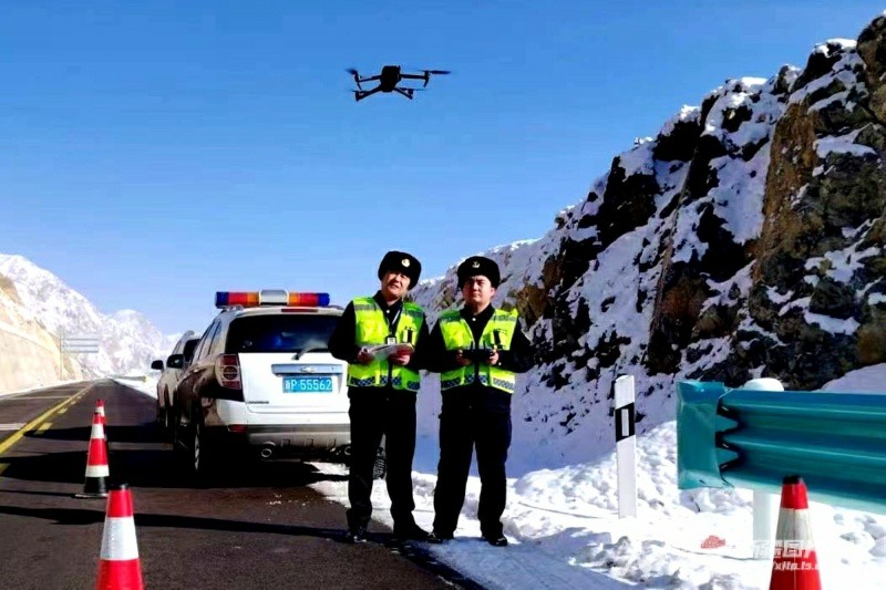 1月24日,克孜勒苏执法支队执法人员,携带无人机赶赴G219线和S306线,联合公路养护部门航拍巡检辖区道路及隧道、桥梁受损情况。王爱辉摄