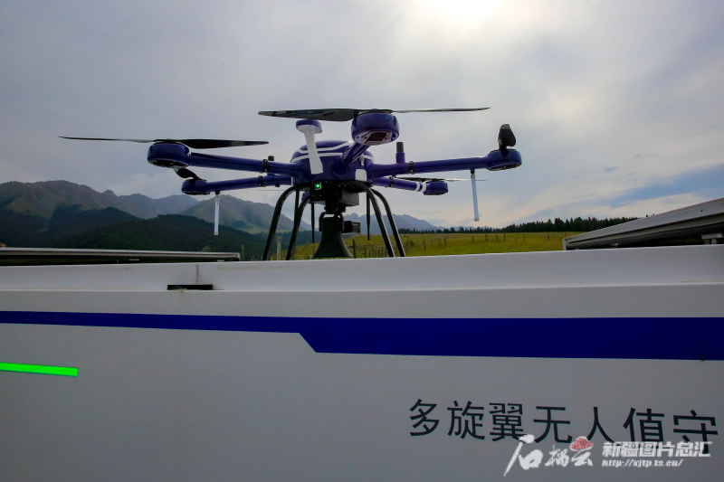 8月6日,乌鲁木齐县菊花台森林草原防火无人机+自动化机库系统自检出库,准备起飞。